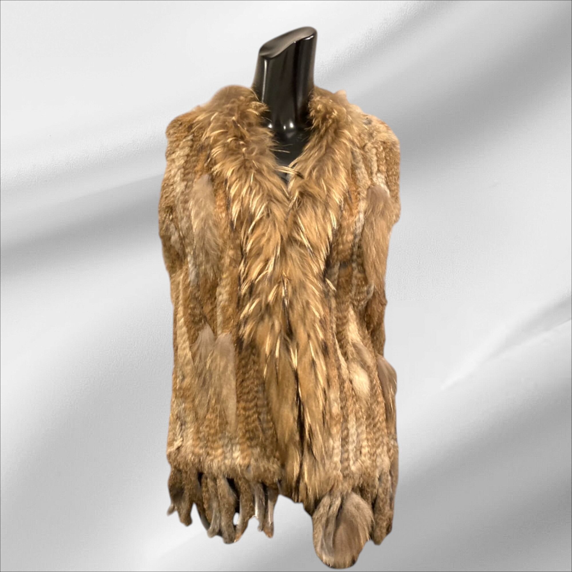 上品なラビットファーの質感と豪華さが、コーディネートを一気に華やかにしてくれます。