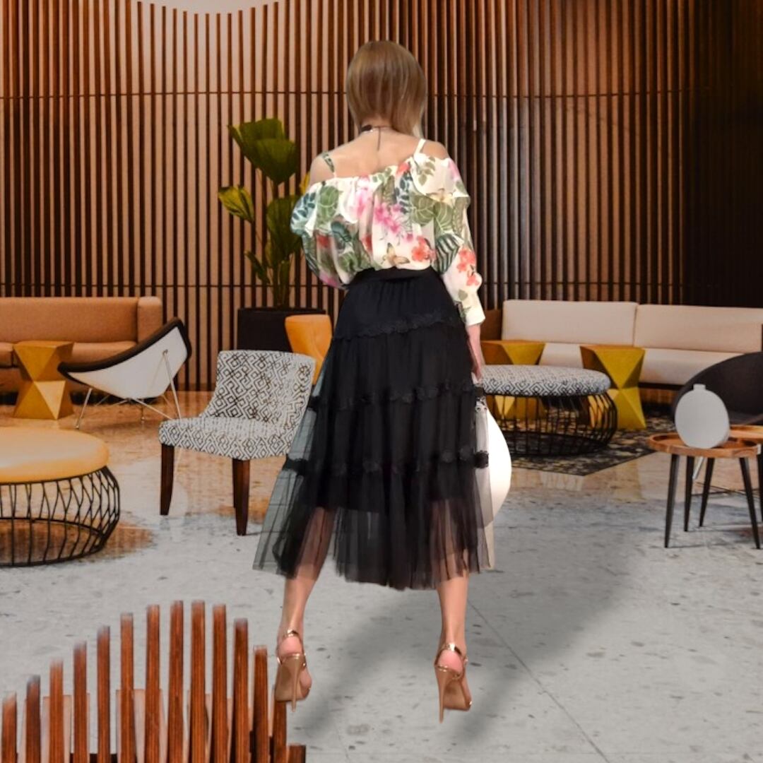 このトップスは、大自然の中で育まれた花々をインスピレーションにデザインされています。花々の儚さや美しさを感じながら着用することで、自然との調和を感じることができます。優雅で華やかな気分を盛り上げる一枚です。